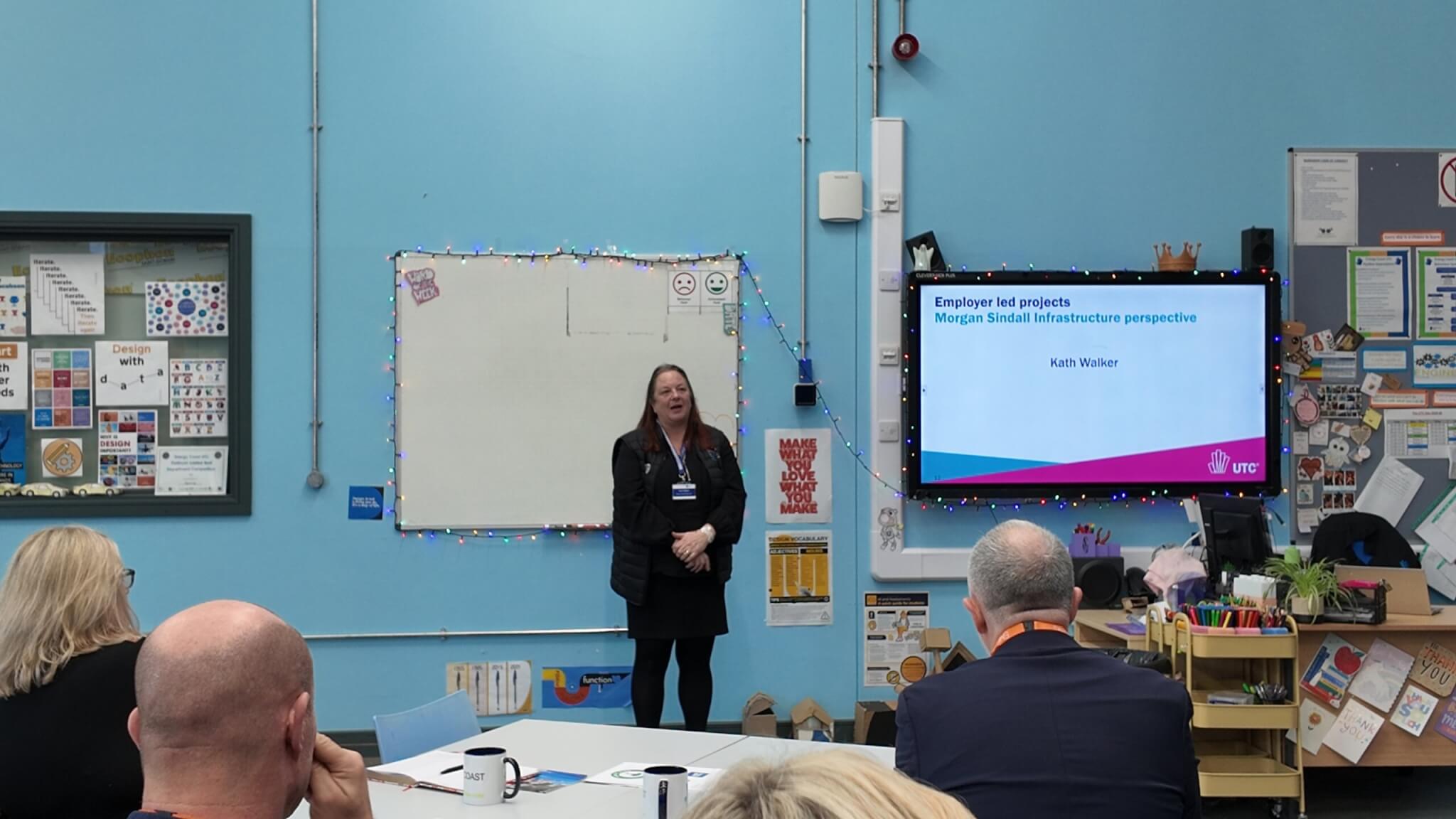The UTC’s chair Andrew Wild, CEO Cherry Tingle, and Head of School Kerryann Wilson gave a highly informative introduction, which was followed by an excellent presentation by Morgan Sindall Infrastructure’s Kathryn Walker about the company’s projects for students. Energy Coast’s Vice Principal Simon Richardson then spoke about the projects from the UTC’s perspective.